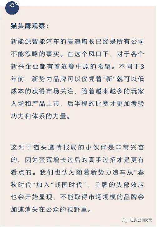 理想汽车其实到目前为止就是一台单一的车型理想One,就取得这样的销量成绩,可以说是效率非常高。考虑到其可查的门店数量截止到2021年8月底,有114家门店,覆盖69个城市。而这个数量对于蔚来是25个NIO House+243个NIO Space,对于小鹏是全国约200个门店。理想的目前的终端门店数量是最少的,不得不说其效率封神。取得这样的效率,猫头鹰认为有四点值得肯定。