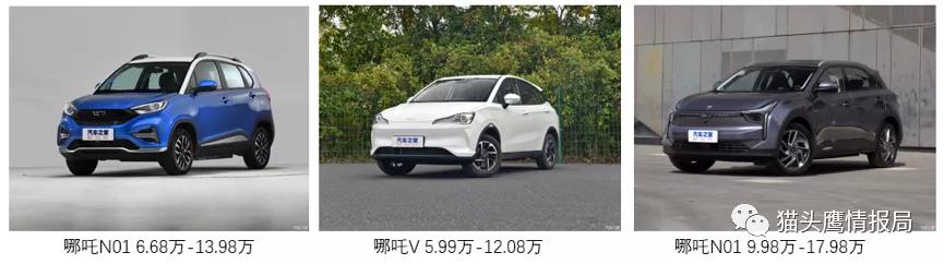 哪吒汽车在10万以下的纯电动汽车市场耕耘多年,现有哪吒U, 哪吒V,哪吒N01三款在售车型。