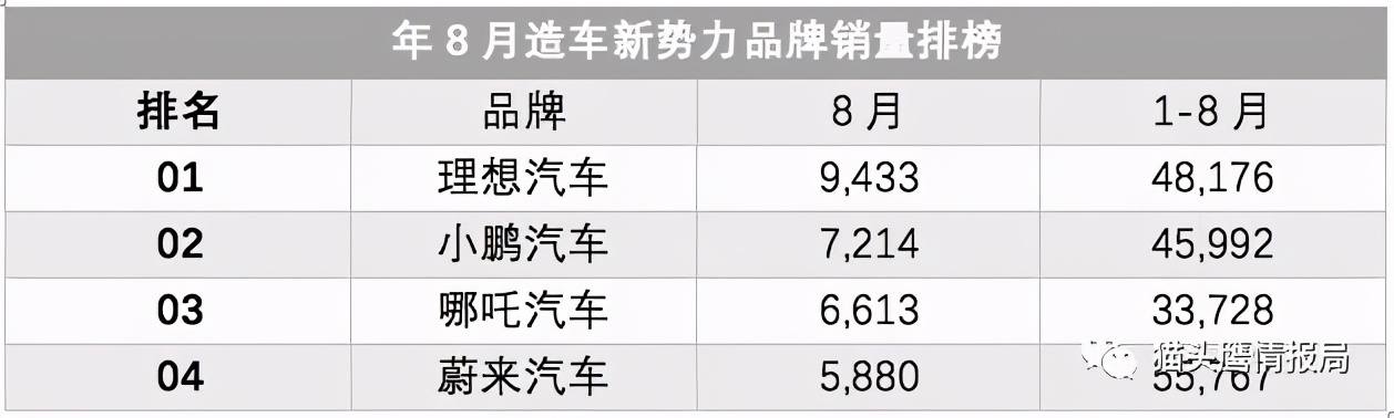 新势力8月销量出炉:理想登顶,蔚来掉队