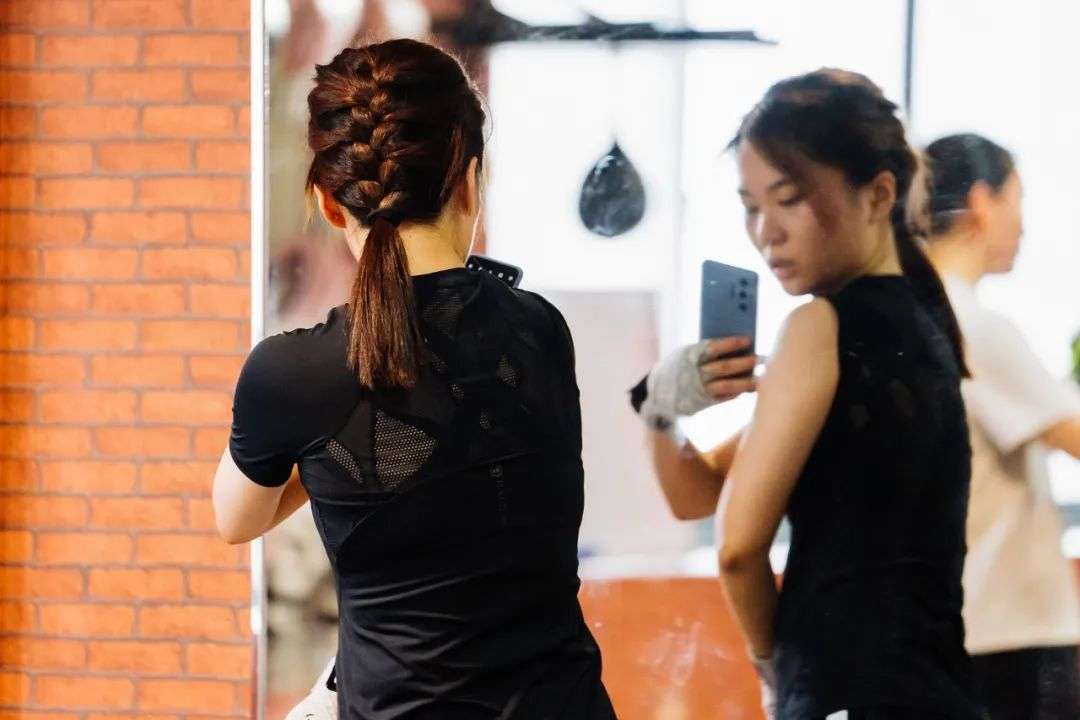课毕,她们快速松掉绷带、摘下拳套,她们头发凌乱、满脸通红、手臂上还有跳双摇绳留下的红印,但镜子里的她们却是那么美、那么生机勃勃。