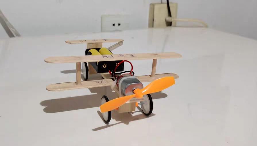 我老公平常喜欢鼓捣数码产品,知道网上有卖马达和电池仓的,我们只需要准备好几根木架,以及从玩具上拆一个扇叶,把零件固定住就好了。
