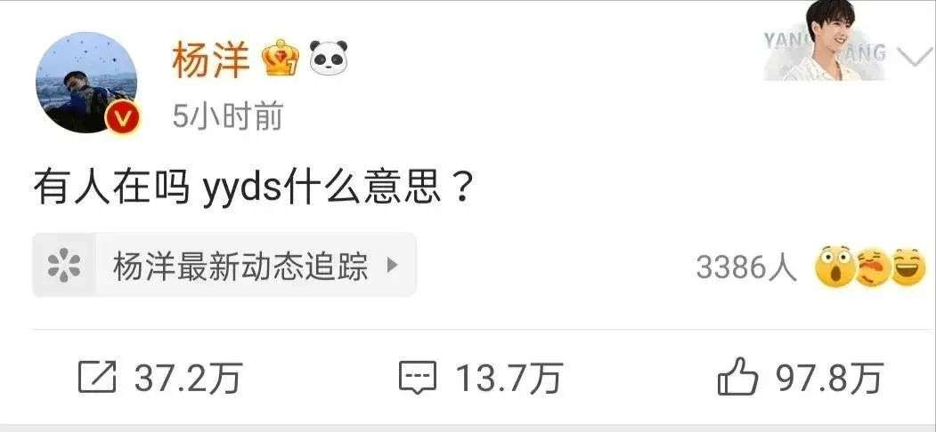 杨洋、陈妍希、张杰都曾发文询问 YYDS 到底是什么意思