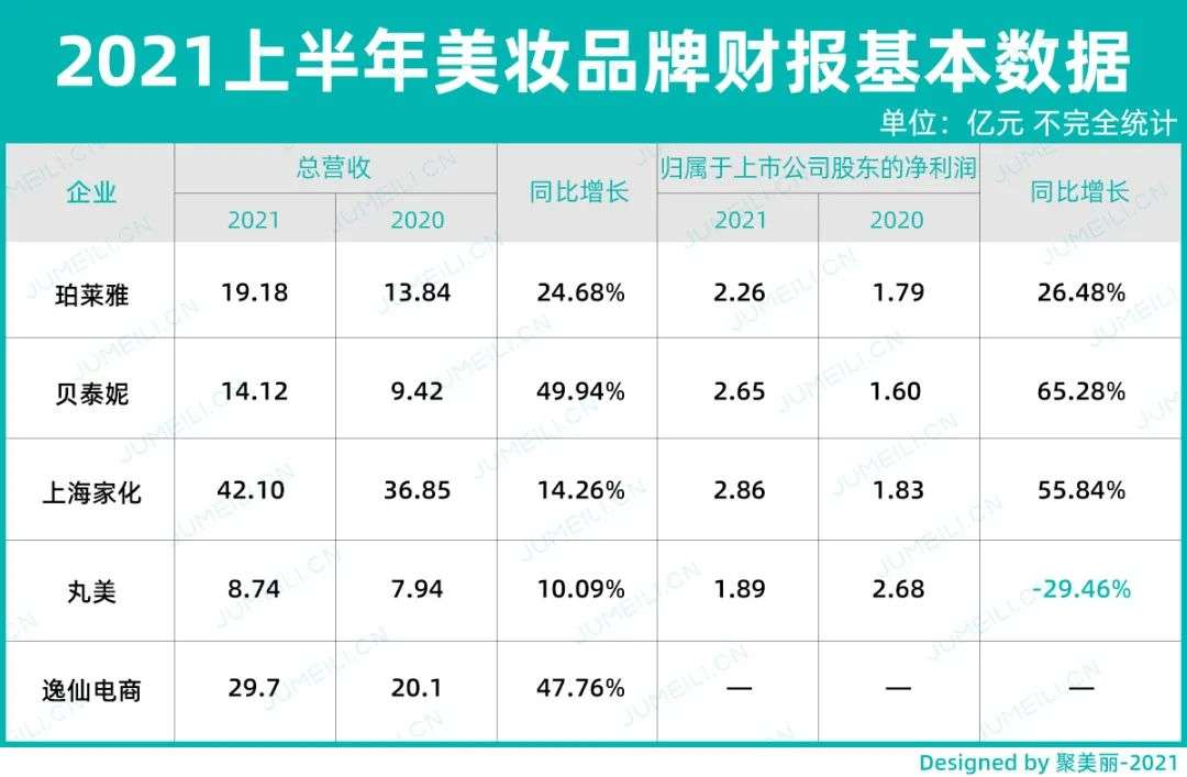 日历已翻篇到九月,美妆及相关企业都陆续公布了2021年年中财报。聚美丽整合了部分美妆及相关企业的半年报数据,带大家回顾上半年,各大美妆企业都有哪些变化。