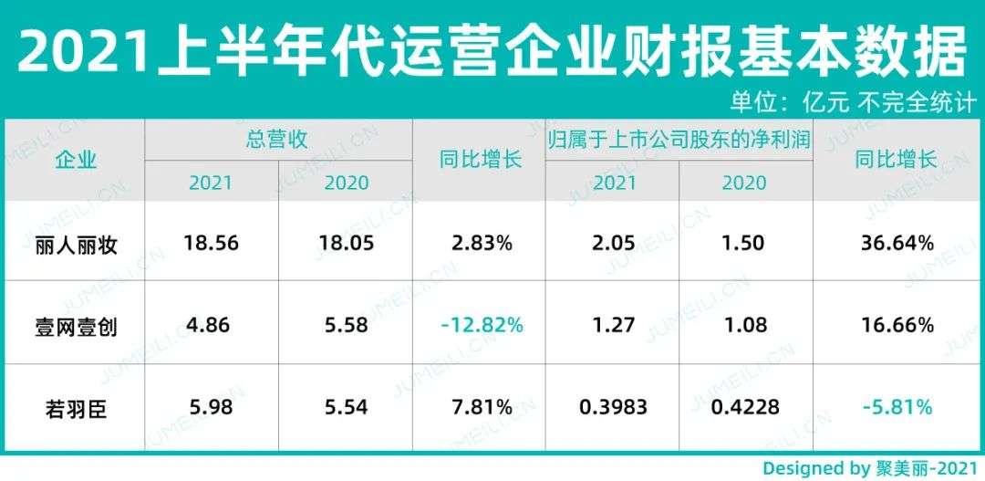 8月26日,丽人丽妆、壹网壹创、若羽臣三家代运营公司皆披露了2021半年报。