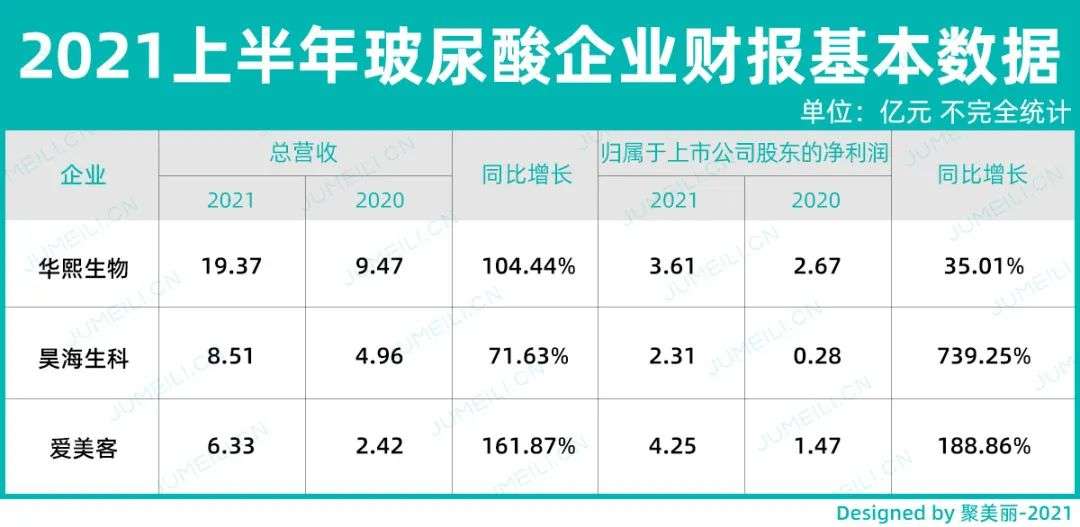 作为高毛利产业,玻尿酸企业上半年营收净利呈两位数及以上的增长。