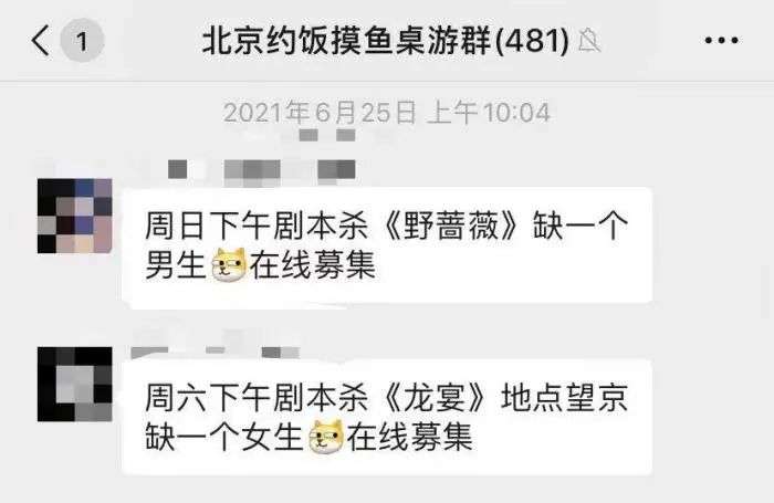 从拉新环节来说,剧本杀游戏一般起步人数6-7人,这也就意味着大部分人想玩剧本杀都得开启拼团模式。为了凑齐6-7人的队伍,大部分人会努力动员所有社交圈,例如朋友、同事、朋友的朋友、同事的朋友等;或者在大群内发出组团信息,在线募集队友。
