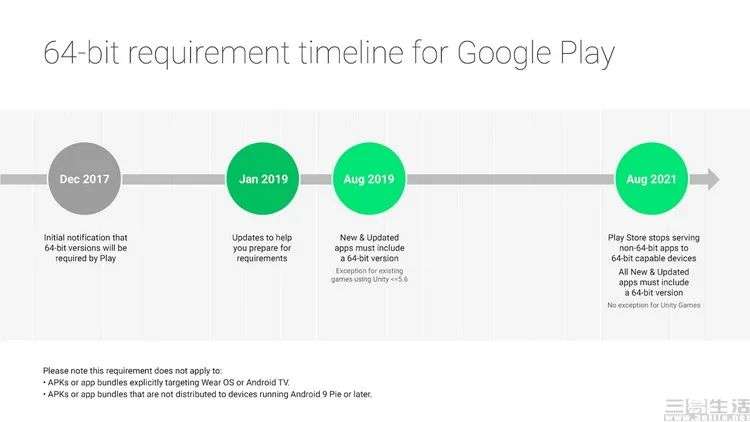事实上针对这个问题,海外的Android生态很早就开始了清退32位软件的进程。甚至在今年8月,海外Android手机的用户已经不再能从谷歌官方渠道下载到32位软件了。换而言之,只要勤于更新,他们手机上的常用软件现在应该都是64位版本了。
