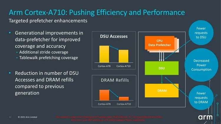 当然,ARM方面也知道,现在市面上还有大量软件(主要是Android和各种小众系统的)采用的还是32位代码。为了解决这个问题,ARM在研发新架构时就往Cortex-A710大核里,加入了兼容32位软件的能力。但与此同时,Cortex-X2超大核与Cortex-A510小核则未做变动,也就是说新的超大核和小核是纯64位核心,并不具备运行32位软件的能力。