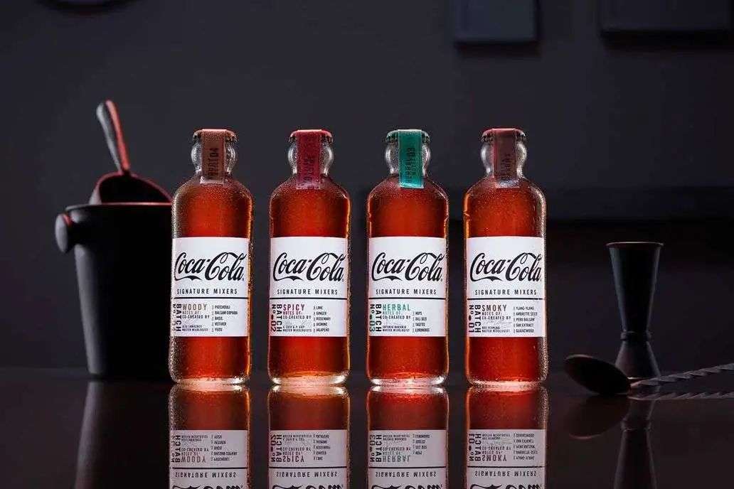 2019年6月,可口可乐在英国推出混合了威士忌等高度酒的可乐Signature Mixers系列。不仅邀请世界知名调酒师调制产品,还别出心裁地采用了玻璃瓶包装,向百年前首支哈坎森玻璃瓶可口可乐致敬。