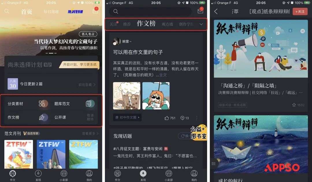 打开《纸条》,它会要求你选择就读年级,然后才推荐合适的素材。在这里,你可以找到分类素材和题库范文;还可以看到大家对不同文学片段的想法,从而举一反三;甚至还有辩论合集,帮助你从不同角度挖掘主题写作方向。《纸条》的强大在于持续更新大家对不同主题的不同看法,能够帮你找到独一无二的角度,可谓是「百家争鸣」。