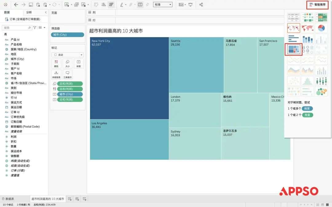 《Tableau》就是为此而生的,你不需要学习很多分析数据或美化图表的使用方式,只需要把维度拖到对应的区域,它就会生成漂亮的图表了。你还可以先选中多个维度,然后使用它推荐的合适的图表类型,省去了思考时间。