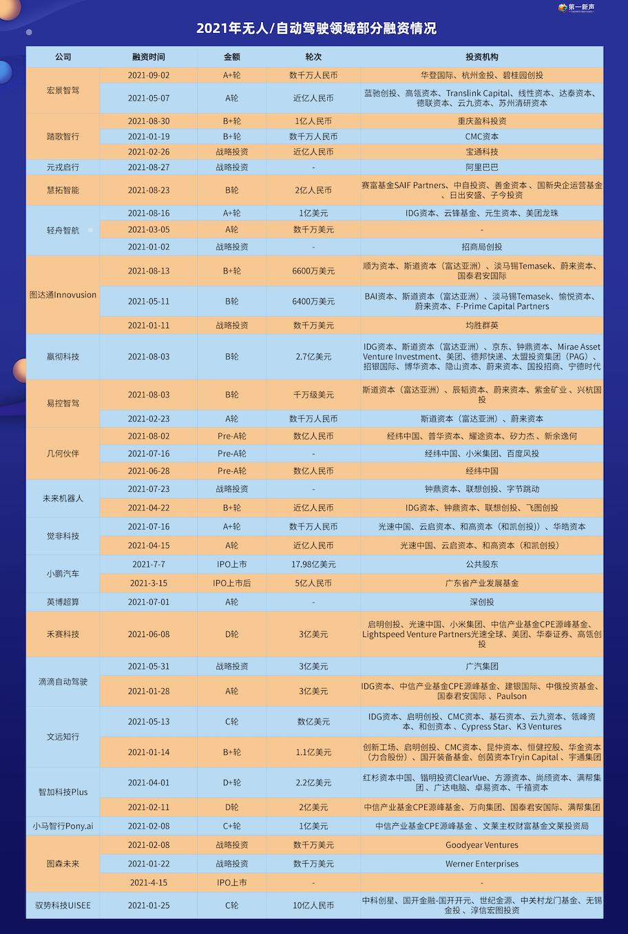 今年也是“自动驾驶上市元年”,无人驾驶卡车服务商图森未来4月登陆美股,成为“全球自动驾驶第一股”;智加科技正在寻求SPAC上市;Robotaxi企业小马智行和文远知行最快可能在今年完成上市。
