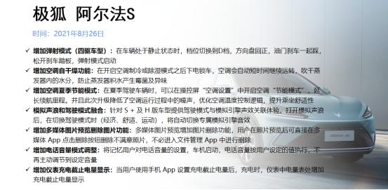同样在8月迎来首次OTA升级的还有极狐的阿尔法S。