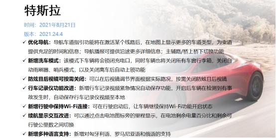 8月21日,特斯拉中国官方发布了年中OTA升级,本次2021.24.4新固件版本,带来7大新升级。特斯拉方面表示,其中多项功能是根据中国用户反馈,由中国软件研发团队特别开发完成。可以说,特斯拉的这次升级是为中国用户量身定制的。