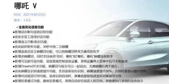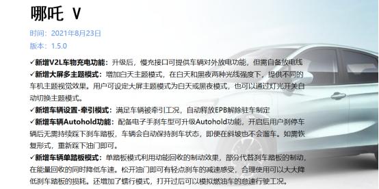 风头正盛的哪吒汽车在8月23日向旗下哪吒V车型推送了1.5.0版本的OTA升级。