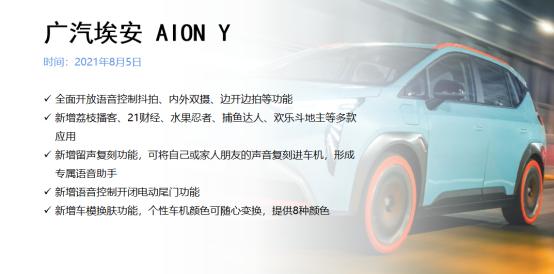 广汽埃安的AION Y车型在8月迎来了首次OTA升级。
