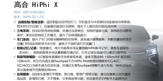 售价57万起的高合HiPhi X在8月26日推送了全新的OTA升级,涵盖6大板块多项功能。