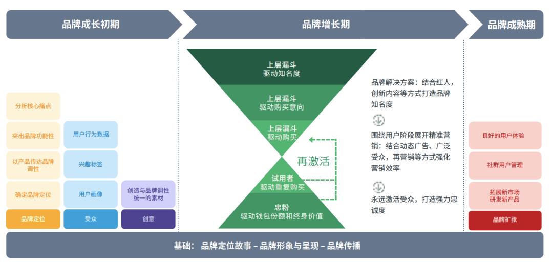 在品牌增长期,专注于拉新,具体可以用网红营销、内容营销和广告投放做增长;