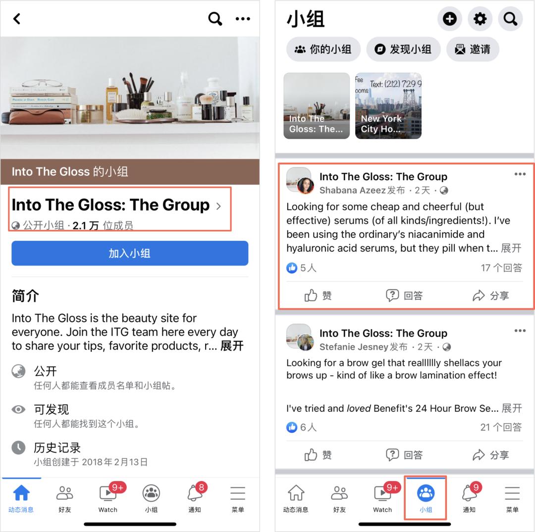 美 国非常著名的美妆 DTC 品牌 Glossier,采取的就是小组管理的方式,其在 Facebook 上建立的小组 “Into The Gloss” 已经超过了 2.1 万名成员。