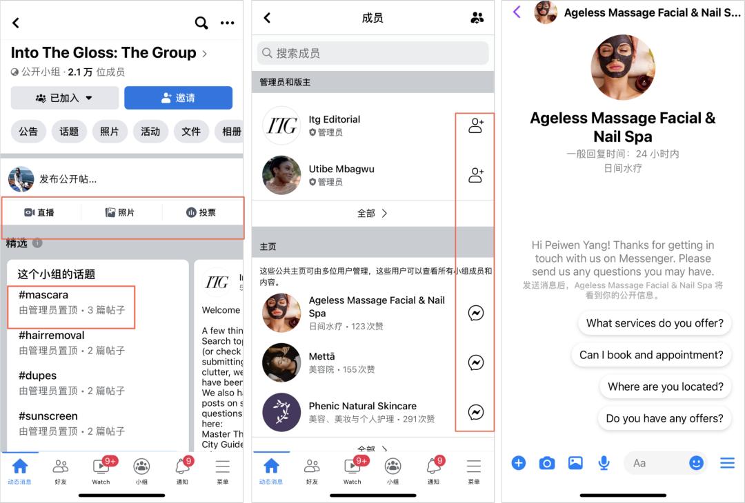 在用户留存上,Facebook 上最常见的方法就是「群组管理」和用户「再触达」: