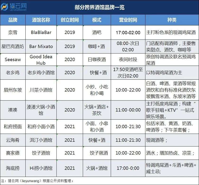 跨界选手也坐不住了,纷纷“杀”进来,尤其与酒馆场景关联强的餐饮企业。今年资本扎堆投餐饮,餐饮扎堆开酒馆,海底捞、和府捞面、老乡鸡、喜家德等纷纷上“酒”桌。