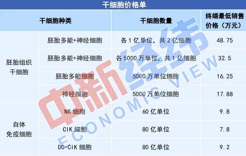 近日,中新经纬采访多名代理得知,目前市面上流行的间充质干细胞回输项目收费多在5万元-10万元不等,价格稍低的自体免疫细胞回输项目收费则在4万元-9万元,最贵的胚胎组织干细胞回输项目收费则在几十万。