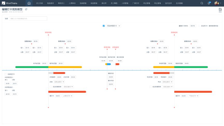第一,在考勤方面,各门店已经实现了人脸考勤机打卡,有效的解决了打卡真实性的问题。同时,借助智能排班,店长可在线进行排班,督导在线完成审批,员工通过APP就可查看。而且系统自动匹配员工打卡记录,准确计算考勤结果。