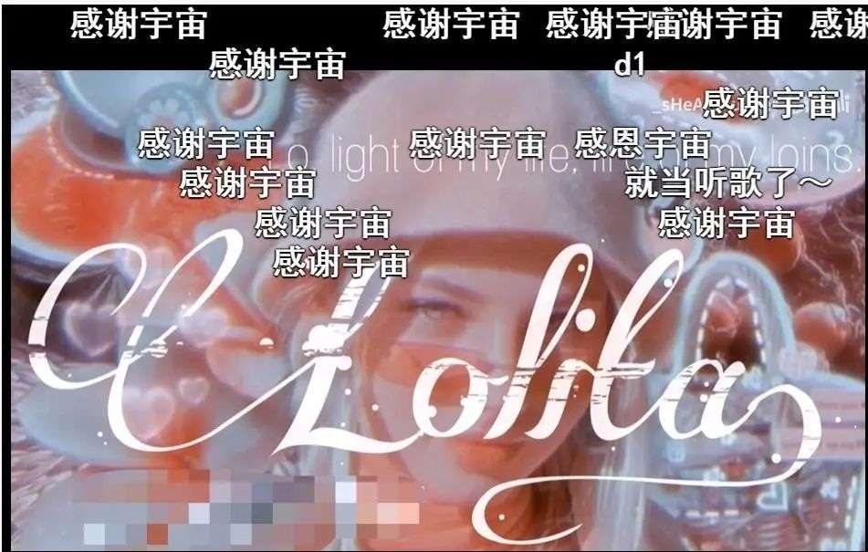 这条拥有华丽功能的视频,内容再简单不过,就是美国女歌手拉娜·德雷(Lana Del Rey)的单曲《Lolita》,时长3分37秒,配以一张粉色洛丽塔图片,播放量却已经超过50万。弹幕持续飘过“感谢宇宙”的字样,1000多条评论里,用户们感叹听后“脸变得幼态”、“眼睛blingbling”,“性格变开朗”,“可以对男生说话了”……