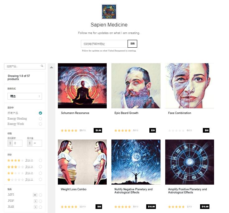 YouTube博主Sapien Medicine的售卖列表。图片:网页截图