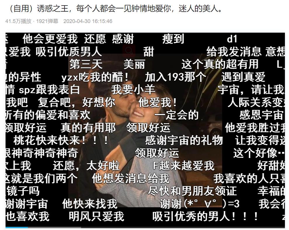 在这条sub的留言区,不少粉丝表示“听哭了”,鼓励自己“我是最好的存在”。一位自称患过抑郁症的粉丝打出长长的肯定语,以“释放焦虑恐惧,感恩宇宙”开头,用“女神复仇女神能量融合到所有的神圣保护盾层”结尾。