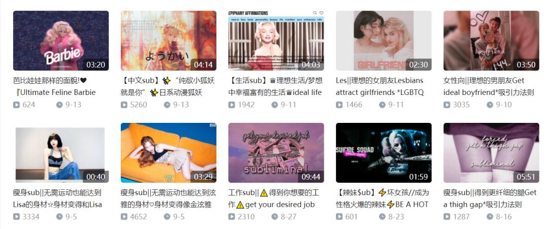 以“sub”为关键词在B站搜索,播放量最高(52.5万)的是一条名为《又纯又欲和不经意间的诱惑 Lolita subliminal》的视频。简介写道:听了将获得“纯情的长相,神颜美貌,火辣的身材,高超的X暗示本领,表现力极强且楚楚可怜的眼神,幼态年轻的相貌,洛丽塔的纯欲风”——这是up主写的肯定语。使用说明也附在其中,比如建议使用耳机,播放30—180分钟,音量小于50%,同时强调“仅对投币粉丝有效”、 “不可下载或缓存”。