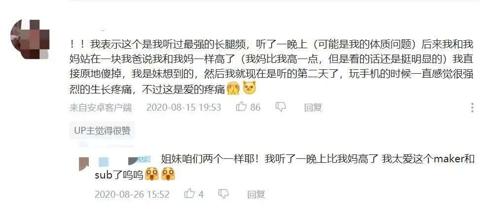 比如一位刚结束中考的学生在“拥有超模同款大长腿”的sub下方,惊呼自己三年没长个,才听了两天就长了2厘米;一名女生在一条“鼻综合2.0”的sub留言区,连续打卡25天——第一次听了1个小时就感到鼻翼缩小了,鼻子上的黑头在第20天变少,最近,她觉得她的山根也高了起来。