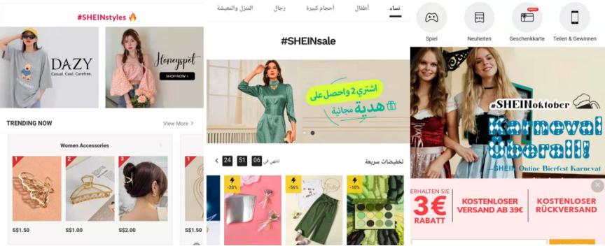 其次,SHEIN的推广主要依赖的是网络社交平台,它在不同平台的官方账号会分地区,并配合不同市场的实际情况,推出不同的宣传内容。