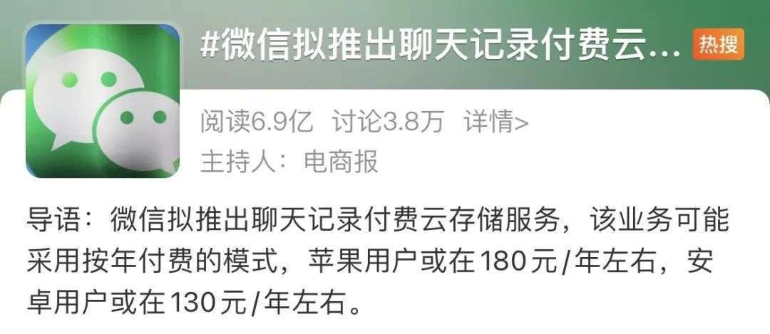关于微信推出聊天记录付费云储存这个功能,我举双手赞同。