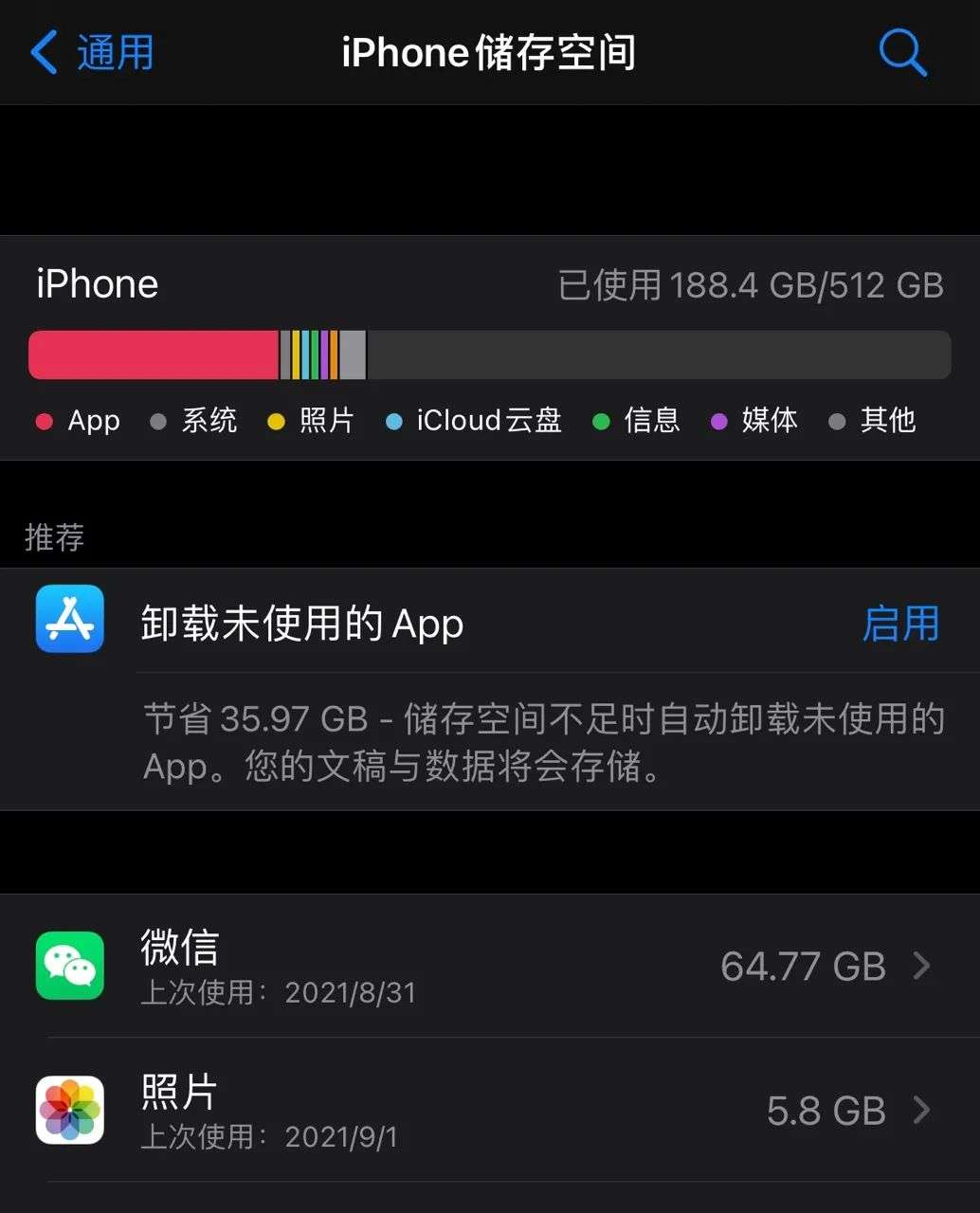 相比硬件或者手机本地储存等方式,云储存不仅更加灵活,而且还可以结合用户的需求用多少买多少,减少储存空间的浪费。像是iCloud,用户就可以用根据需求购买储存空间,等满了之后再购买新的容量。但买iPhone手机的时候,用户就很难预计自己会用多少储存空间,像我往往在购买新机的时候就一定会买有最大储存空间的那一款,要知道手机每多几百G储存空间,价格也会随着上升。我现在就买了512G的iPhone 12 Pro Max,但事实上我只用了近188G的储存空间,把照片这样占内存的内容大都存储在了iCloud上,为本地储存留下了更多的空间,而那些多出来的空间,感觉就有点浪费钱的意思在里面。