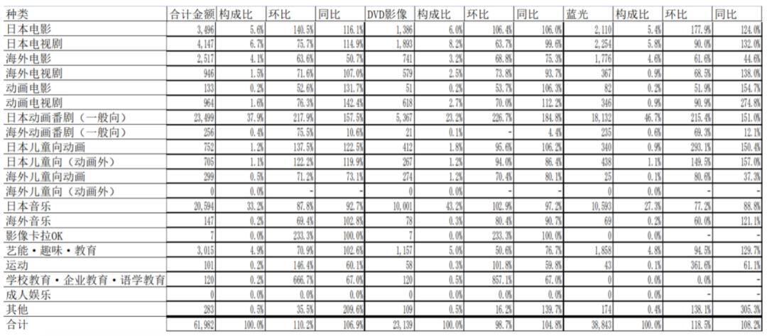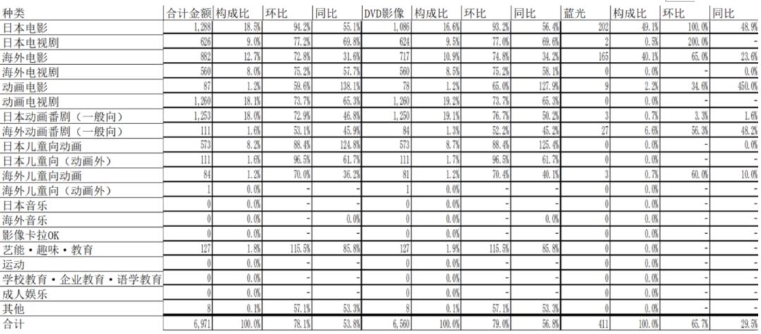 面向租借店的销售额为69.71亿日元,同比减少53.8%,相当于减了一半,在光盘市场中的占比也减少了一成左右。