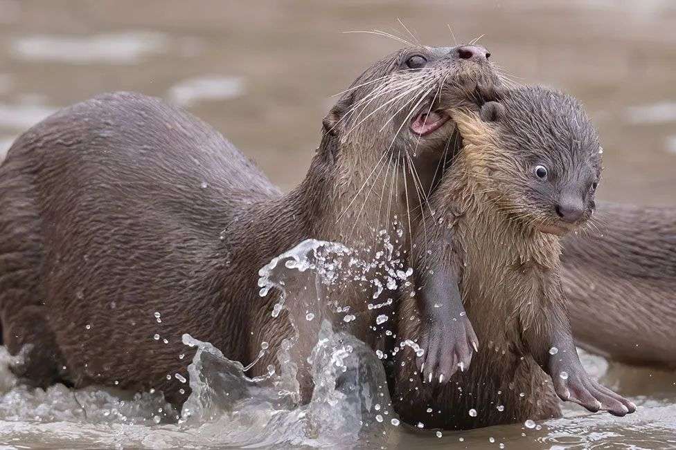 不过,拍摄者Chee Kee Teo表示,照片中叼住小獭的其实并不是它的妈妈,而是家族里的其它水獭。