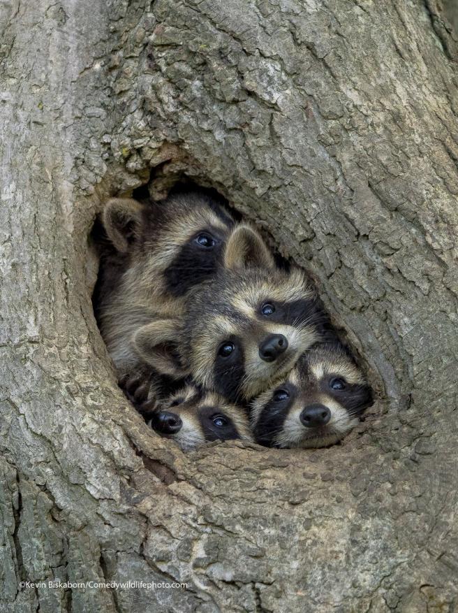 树洞里挤着浣熊一家子 | Kevin Biskaborn