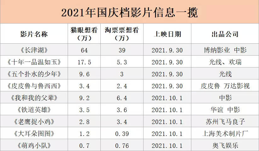 经历过惨淡的暑期档后,2021年的国庆档注定要成为各方激战的主战场。
