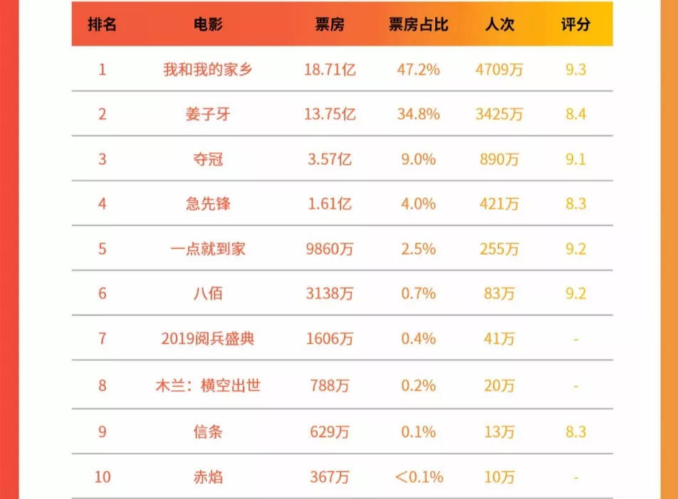 头部几无悬念:《长津湖》《我和我的父辈》《铁道英雄》扎堆