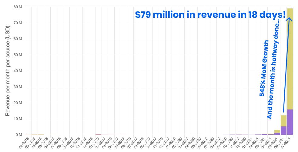 游戏在7月份前18天内营收7900万美元,相较6月全月增长548%图源:Axie World