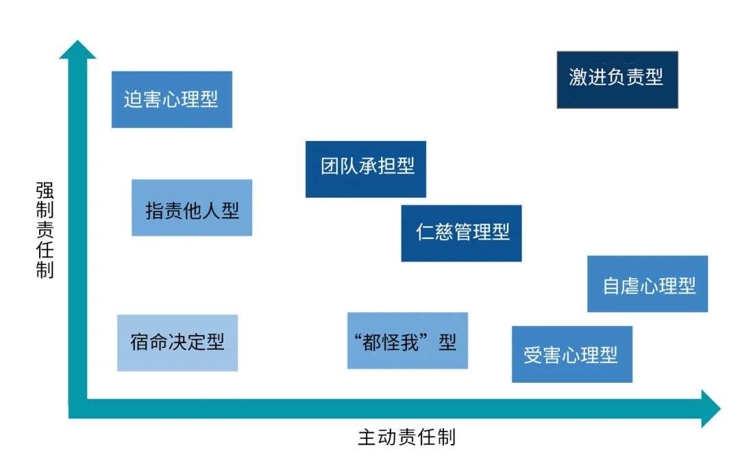 每种责任制度都有其缺陷,我们每个人或多或少都能感觉到。但有时,我们很难明确地表达出究竟想要怎样的结果。比如上文所提到的“真正负起责任”,“负责任”就有很多种类型,从传统的团队承担型,到仁慈管理型,再到激进责任型,它们在实际团队的管理中都会出现。