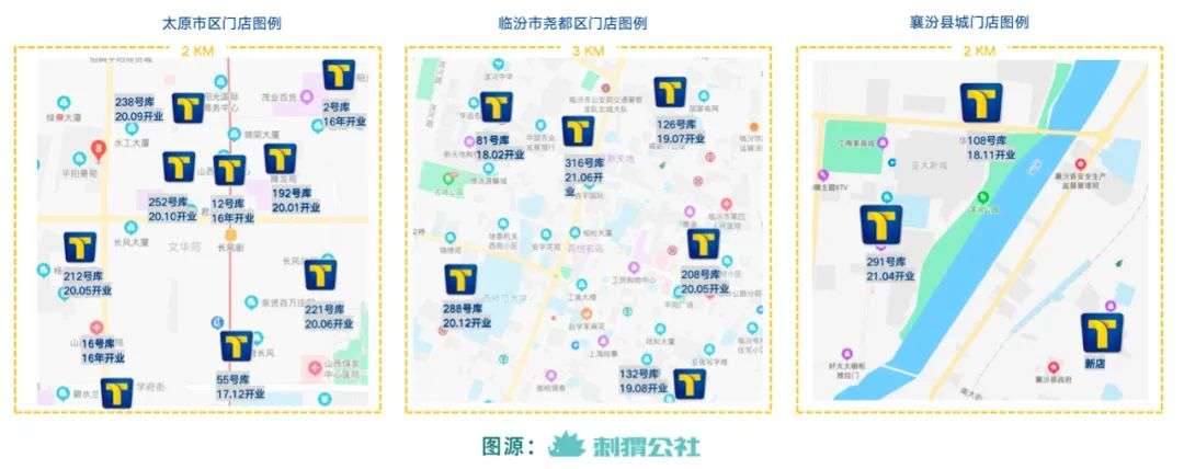 山西省临汾市城区(尧都区)共有城镇人口约100万,10家同城酒库的门店驻扎于核心商圈,月销售额超过300万元。在300公里之外的山西省太原市,同城酒库拥有超过80家门店,覆盖472万城镇常住人口,平均月销售额2400万元。