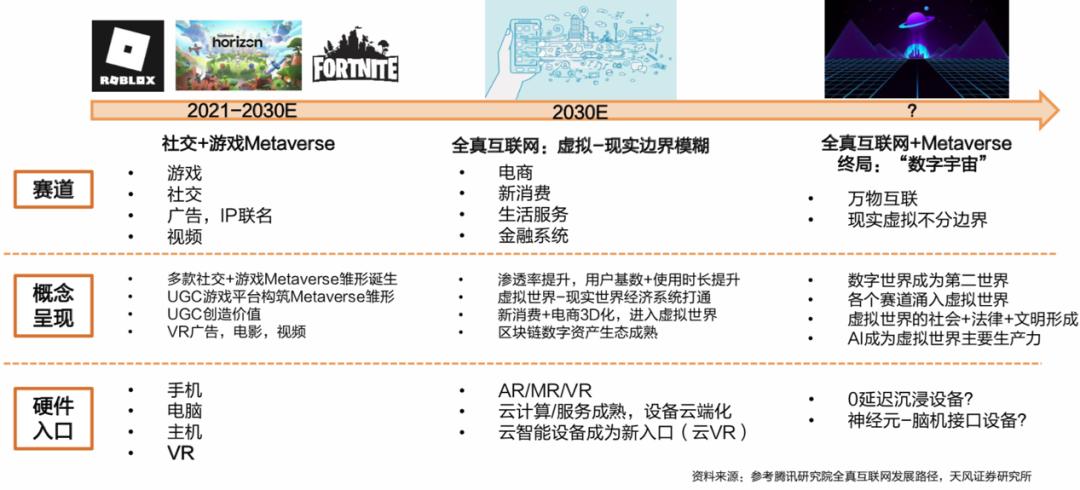 腾讯研究院认为,2020年开始的疫情,也加速了元宇宙时代的到来,许多真实场景被搬到虚拟世界中,发布会、演唱会、毕业典礼、在线教育,种种体验正以意想不到的速度转移到线上。随着线上线下的打通,人们倾向于将更多的时间和金钱花到虚拟世界,因而认知也逐渐转变。一种新的社会共识正在诞生——虚拟世界不是假的、无关紧要的,而是一种人类全新的存在状态。