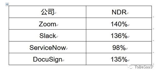 下面摘录几家美国知名SaaS公司2019年的NDR数据。