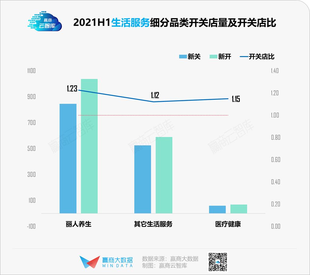 2021上半年,生活服务整体开关店比1.18,各细分品类均有所扩张。疫情防控常态化,消费者对于“美好生活”相关品类的消费意愿有所提升。