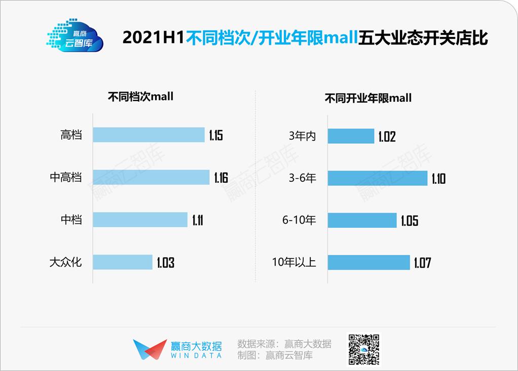 开业3年以上的mall,在上半年的新开门店相对较多,对品牌的吸引力更强。