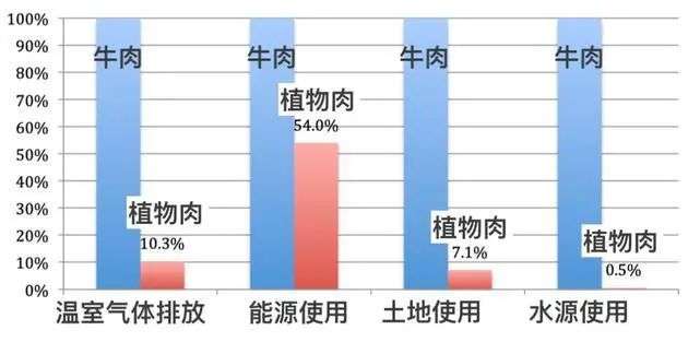 植物肉消耗的水仅是传统农业的 0.5%,温室气体仅是传统农业的 10.3%。考虑到一头牛的一年产生的温室气体,光二氧化碳就 3 吨之多,还不含甲烷等气体。如果真的能替代一部分畜牧业产量,植物肉可能真的能给环保贡献一些力量。