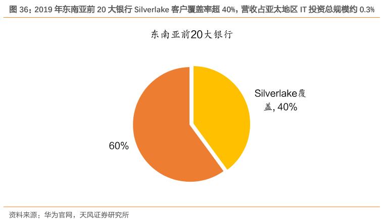 据天风证券研究所信息,2019 年,Silverlake 相关业务营收占亚太地区 IT 支出总规模的 0.3%,客户覆盖率超40%。