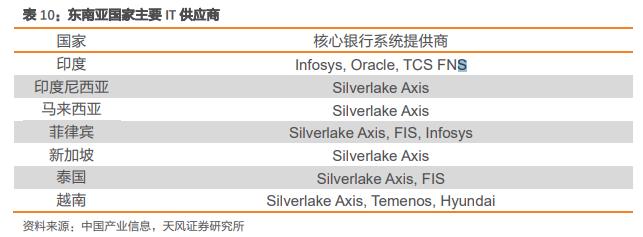 1989年成立的专业银行软件开发公司SilverLake早已瞄准这一市场,并在东南亚市场处于相对领导地位,是Top10大银行最主要的核心系统供应商。